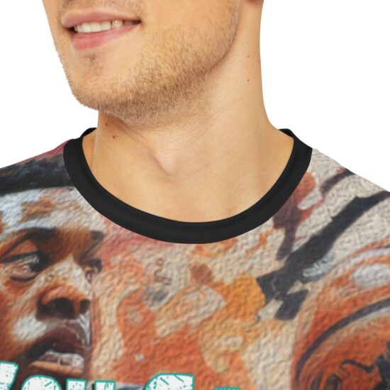 The vibrant all-over print decorates both the front and the back of this tee, making it an instant standout in anyone’s wardrobe. Made with 100% silky smooth, brushed polyester, these t-shirts are comfy, and designed to shrink and fade-resistant. All panels are cut and sewn together by skilled artisans for picture-prefect printing and excellent fit.