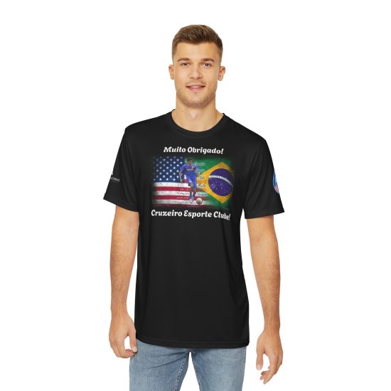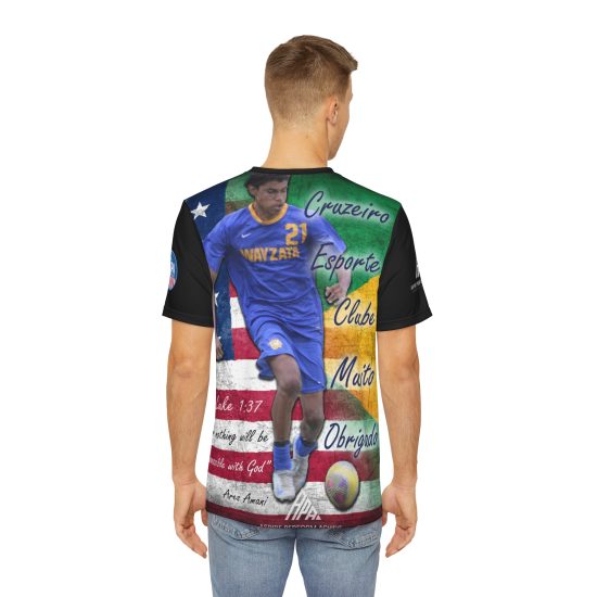 This tee commemorates the journey of an American soccer player invited to try out for the Cruzeiro FC Academy Team in Brazil. It symbolizes perseverance, faith, and the courage to relentlessly pursue dreams. Perfect for soccer fans and athletes who believe in overcoming challenges and seizing opportunities. Relevant for soccer tryouts, sports events, and motivational occasions.