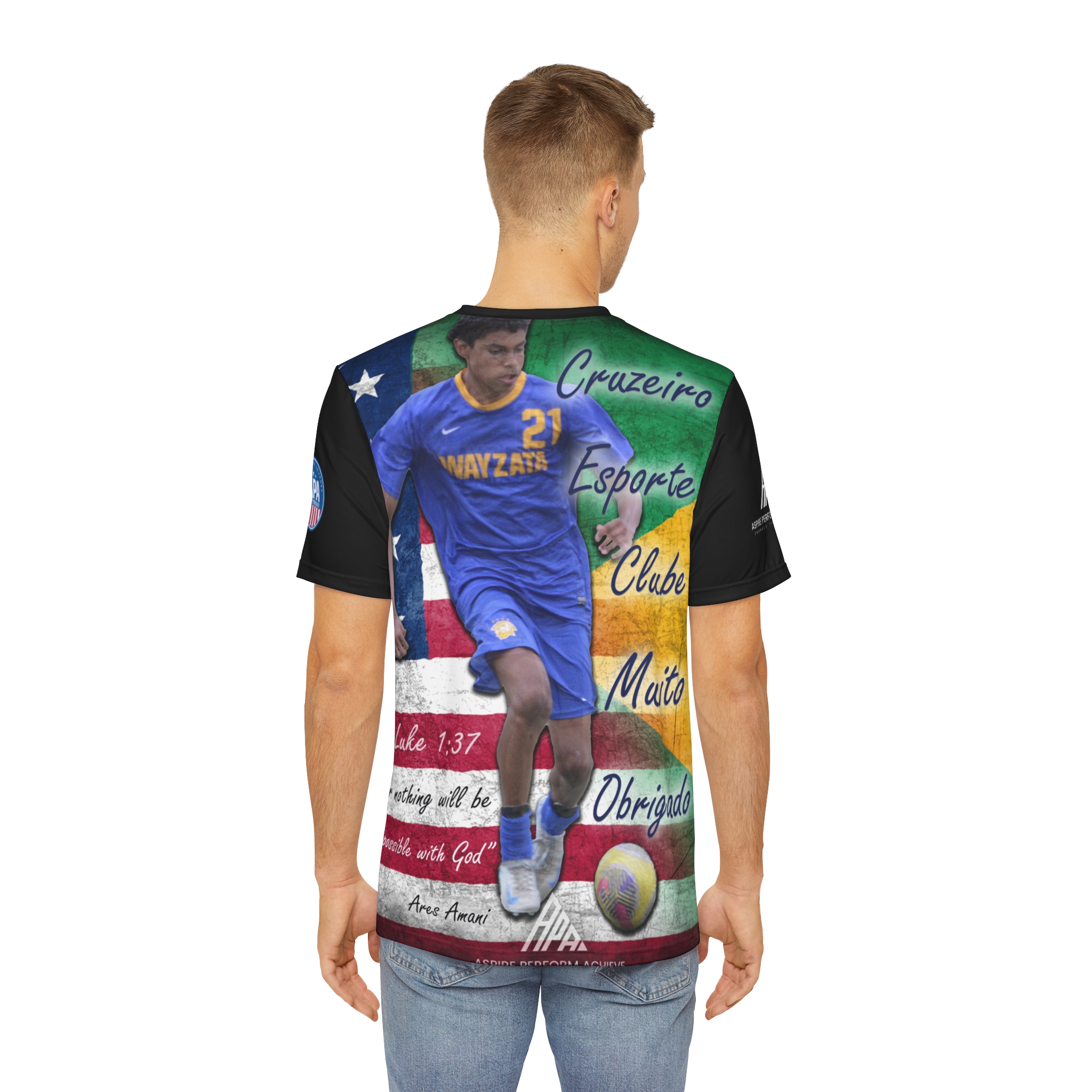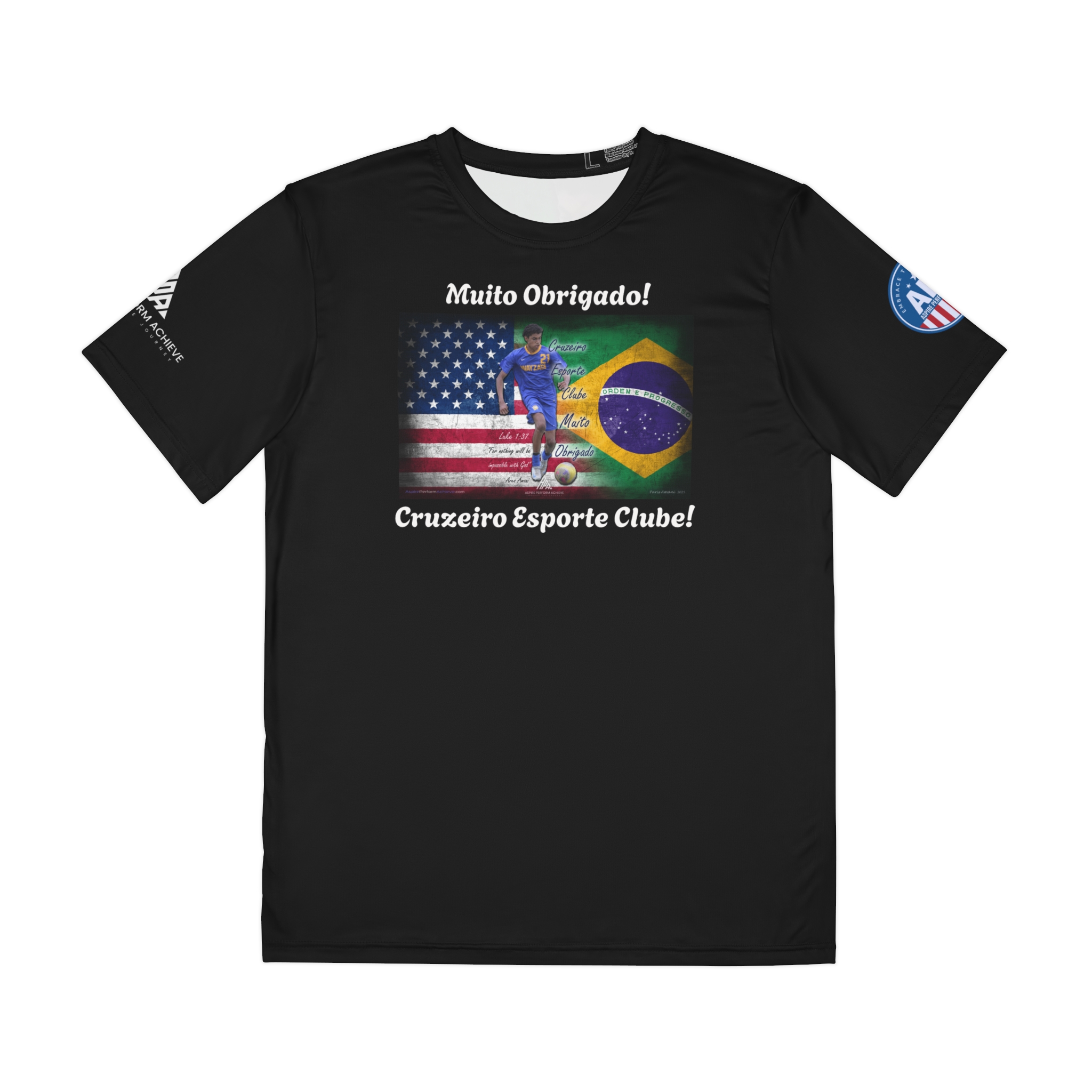 Ares’s journey is one of resilience, faith, and unrelenting passion. Now, you have a unique opportunity to be part of this incredible story by purchasing an official Aspire Perform Achieve T-shirt. Your support will help fund trip to train with the some of the world’s best at Cruzeiro Esporte Clube in Belo Horizonte, Brazil. Cruzeiro competes in the prestigious Campeonato Brasileiro Série A, the top tier of Brazilian football, and the Campeonato Mineiro, Minas Gerais’s premier state league!